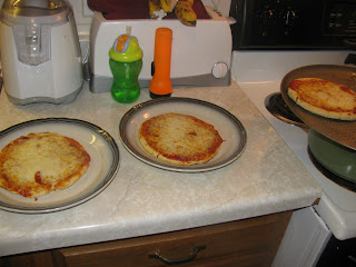 Tonight I had the kids make their own pizzas. I kept it easy by buying those pre-made pizza crusts and just putting all the stuff on it. Worked out great, and the kids had a ball! And the pizzas were delicious!